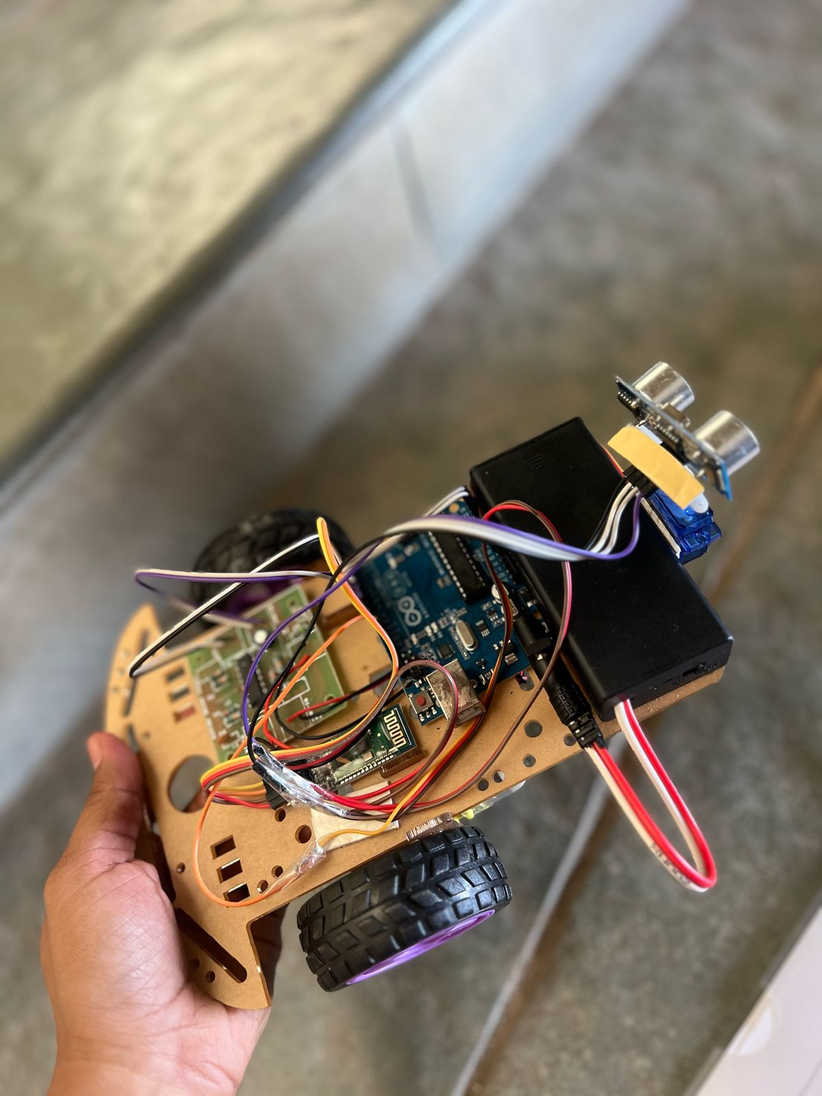 This project demonstrates the development of a Bluetooth-controlled smart car using Arduino Uno.The car can be operated wirelessly through a mobile Bluetooth app using the HC-05 module. It is capable of moving in all directions—forward, backward, left, and right—via user commands. An ultrasonic sensor (HC-SR04) is integrated to detect obstacles in the path. Upon detection, the car intelligently changes direction by rotating 180 degrees to avoid collisions. The system uses DC gear motors for movement, an L298N motor driver for motor control, and a servo motor for ultrasonic sensor rotation, enhancing obstacle detection coverage. This project combines IoT, robotics, and automation, making it an ideal prototype for smart mobility systems.